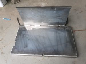 Tractor battery tray and bonnet support fully fabricated replacements from new steel to resemble rotten part.